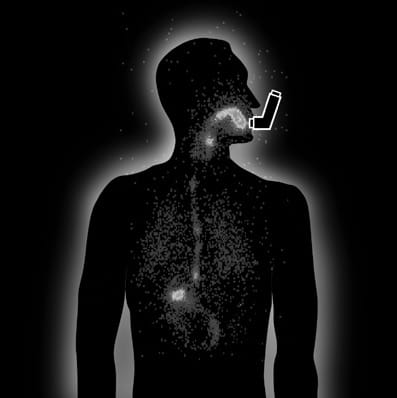 - Naciśnij inhalator i wykonaj powolny, głęboki wdech, aby lek dotarł do płuc.